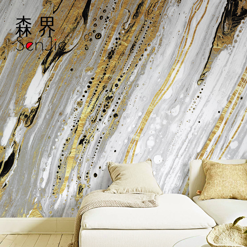 森界北歐輕奢金色抽象壁紙創意客廳臥室背景牆紙定製壁畫無縫牆布